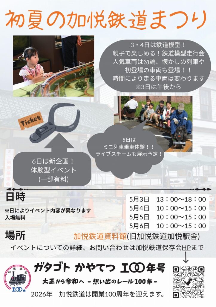 ■5/3-5/6 初夏の加悦鉄道まつり ・加悦鉄道資料館(旧加悦鉄道加悦駅舎) 鉄道模型壮行会、ミニ列車乗車体験、改札体験など開催します。