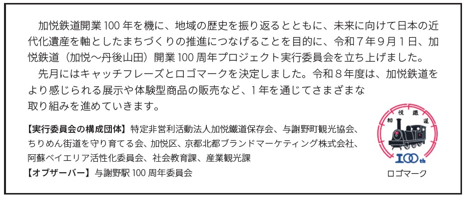 2026年を通じて、与謝野町では加悦鉄道の歴史を振り返る様々な企画を予定しています。