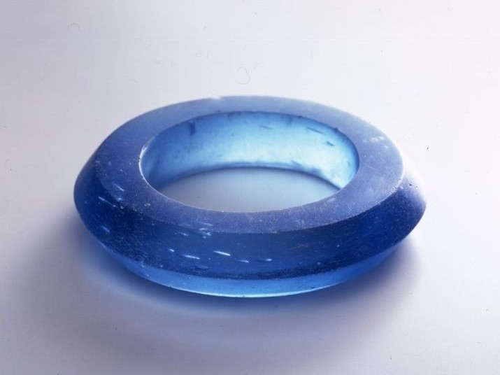 弥生時代の古墳「大風呂南墳墓群」で見つかった腕輪「ガラス釧」。外径約10センチ、内径約6センチ、厚さは約2センチ。重さは約170グラムある。弥生時代後期、約1800年前のものとされ、国の重要文化財に指定されている。