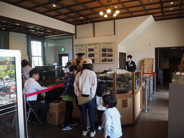 加悦鉄道資料館の展示室内にNゲージ鉄道模型ジオラマを設置、様々な列車を運転します。