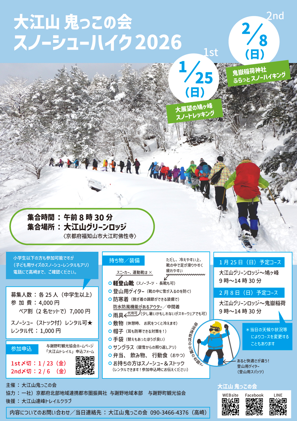 ❄両日とも8:30 大江山グリーンロッジ 集合 - 予約:事前予約に限る。